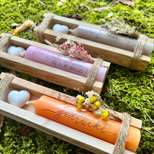 Geburtstagsgeschenk / Aufsteller personalisiert / Kerze / Holz