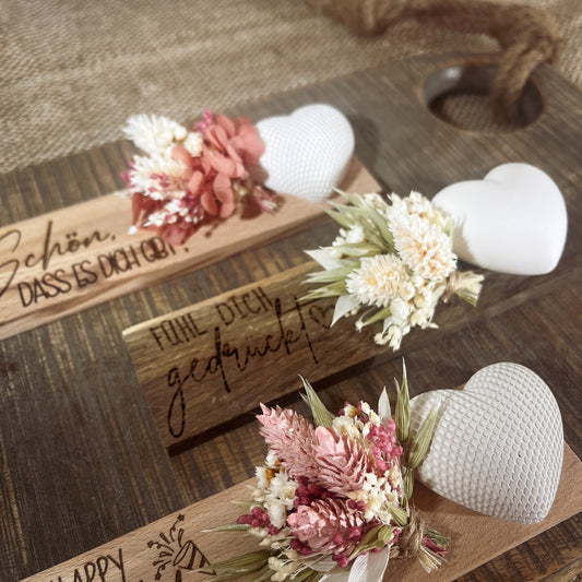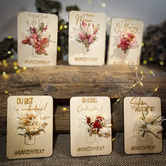 personalisierte Grußkarte / Holzkarte / kleines Mitbringsel / Trockenblumen