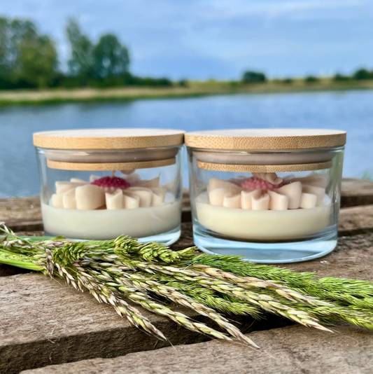 Kerze im Glas/ Blütenlicht / Kerzenglas / Sojakerze / Vegan / Glitzer-Effekt / besondere Kerze