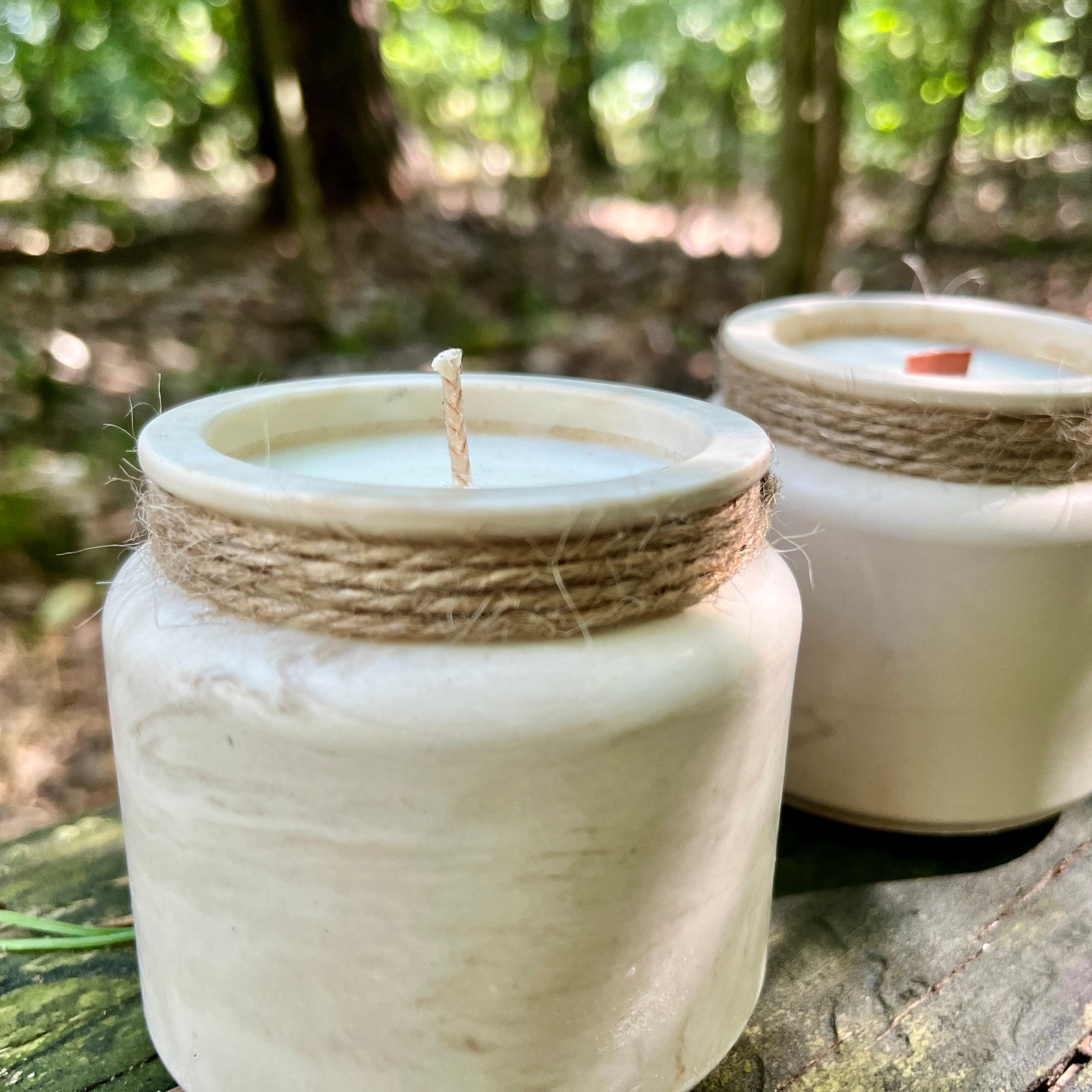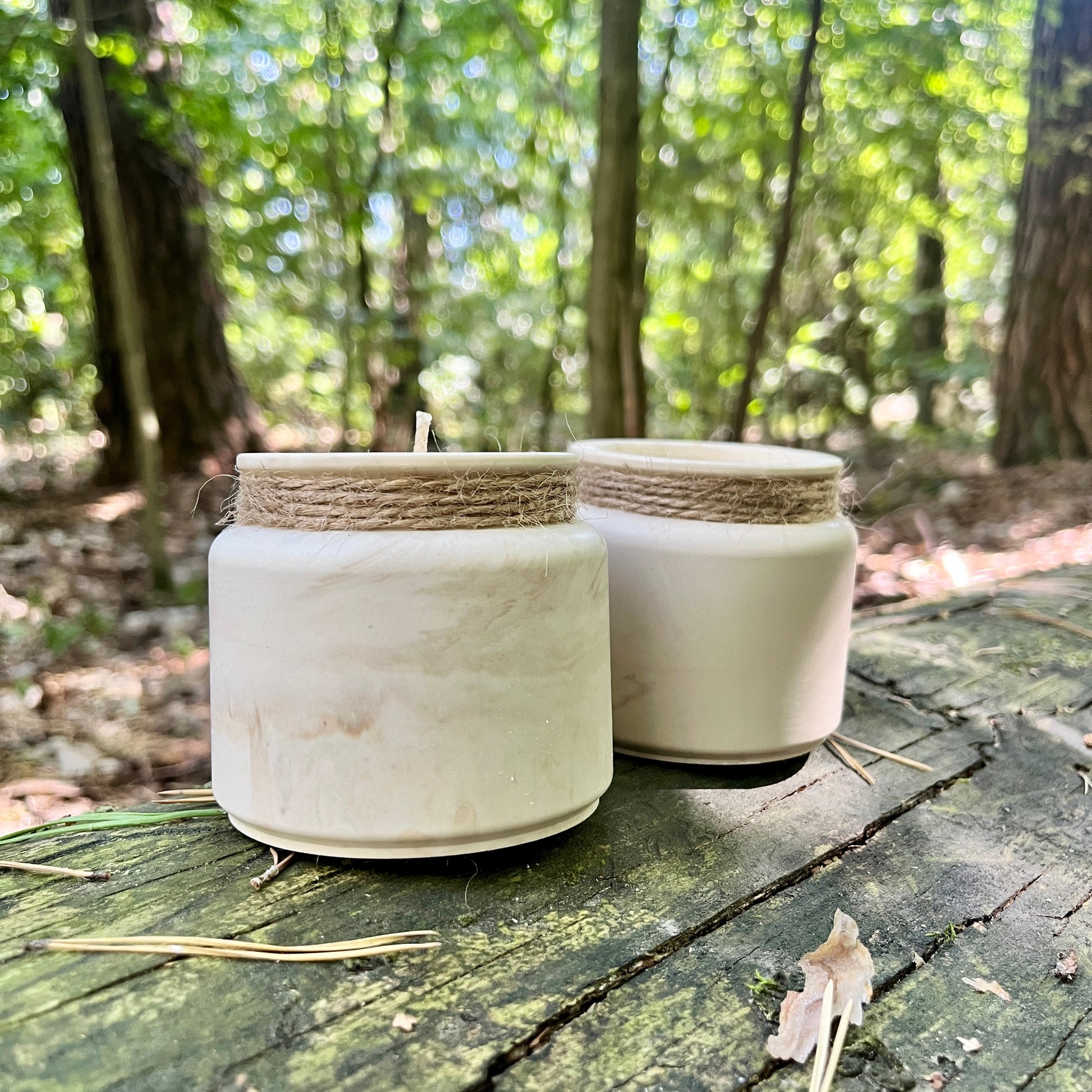 Erlebe wohlige Momente mit unserer exquisiten Kerze, die deine Sinne verzaubern wird. Die Kerze ist in einem handgegossenen & versiegelten Jesmonite Behälter gegossen.