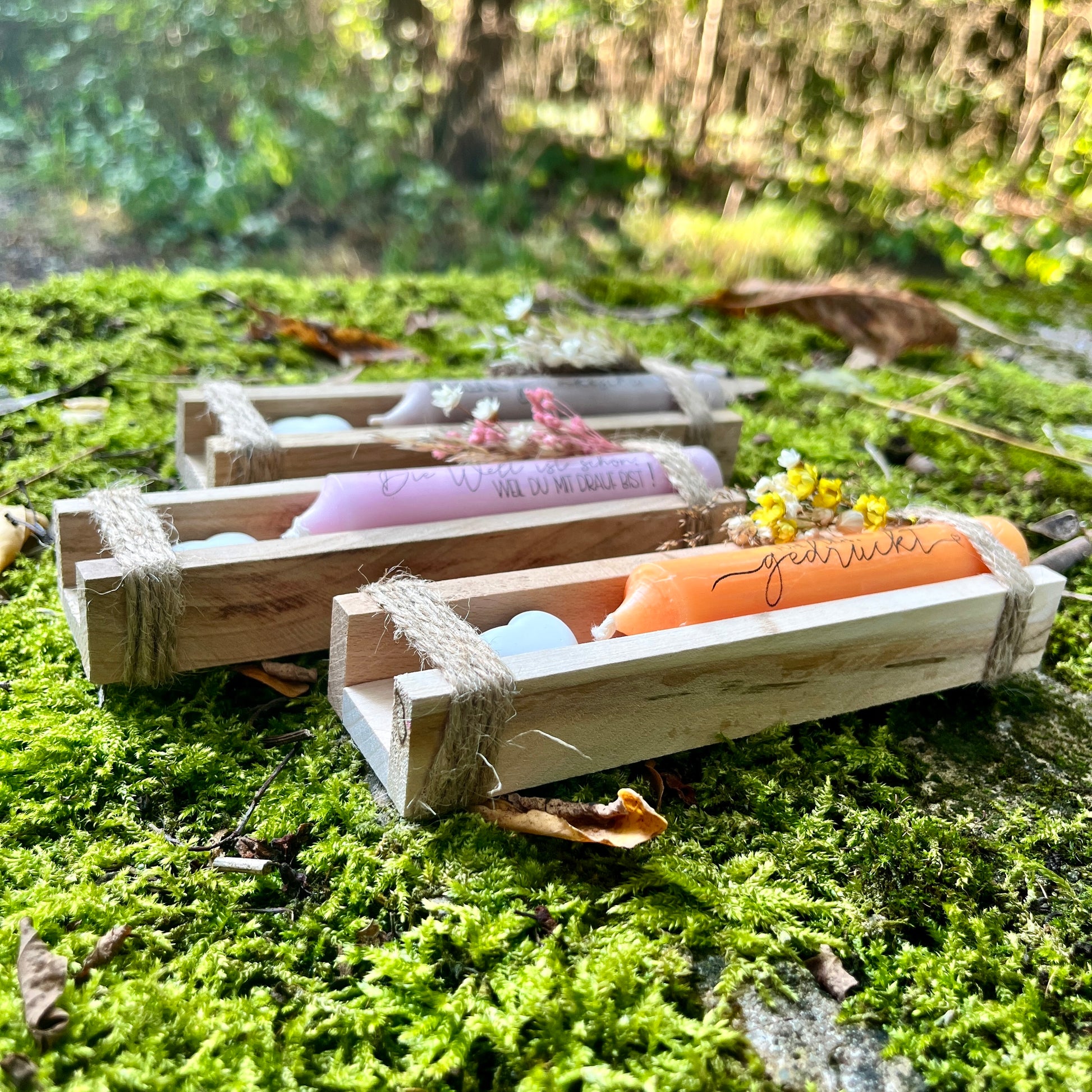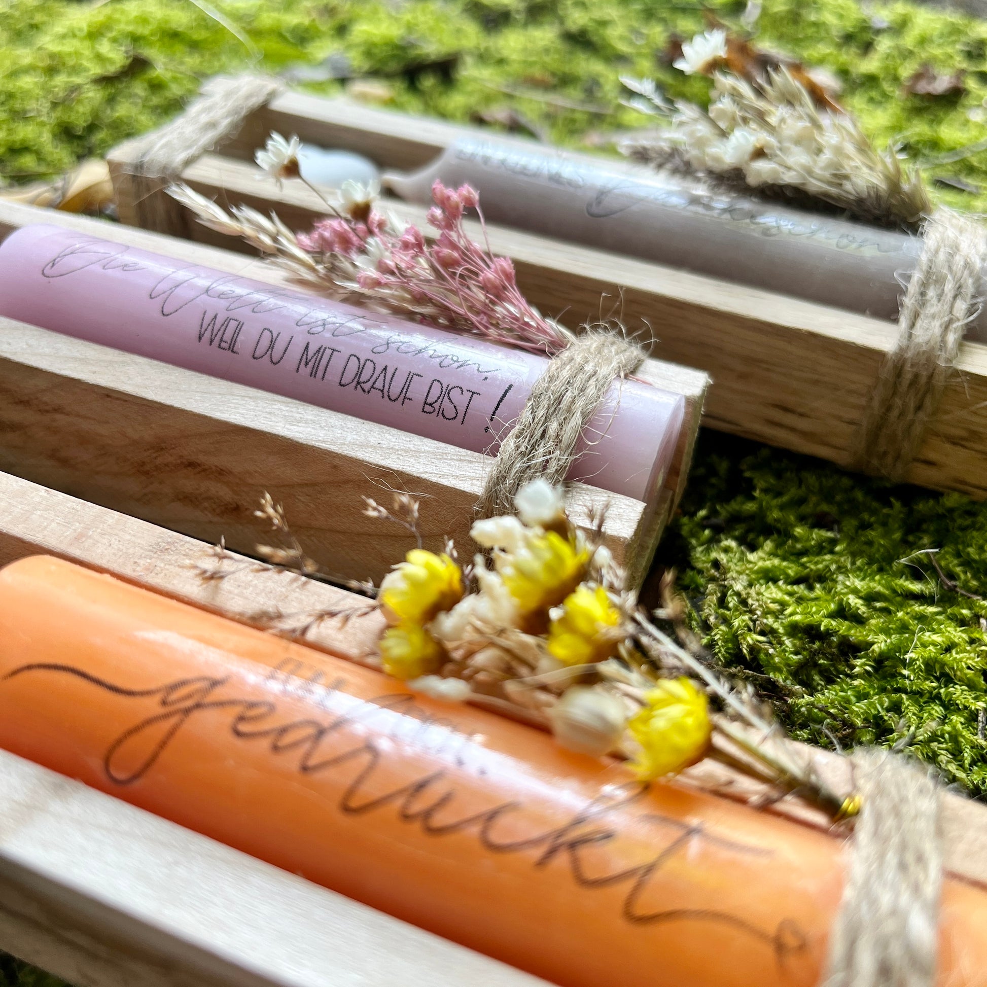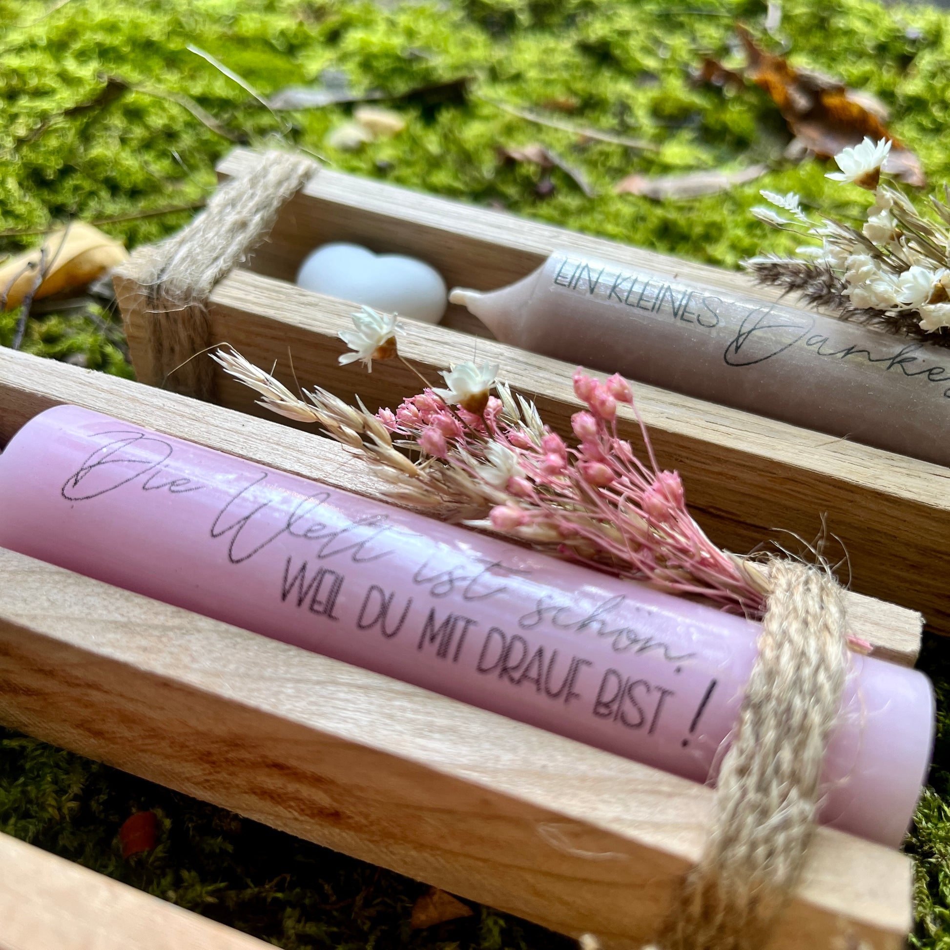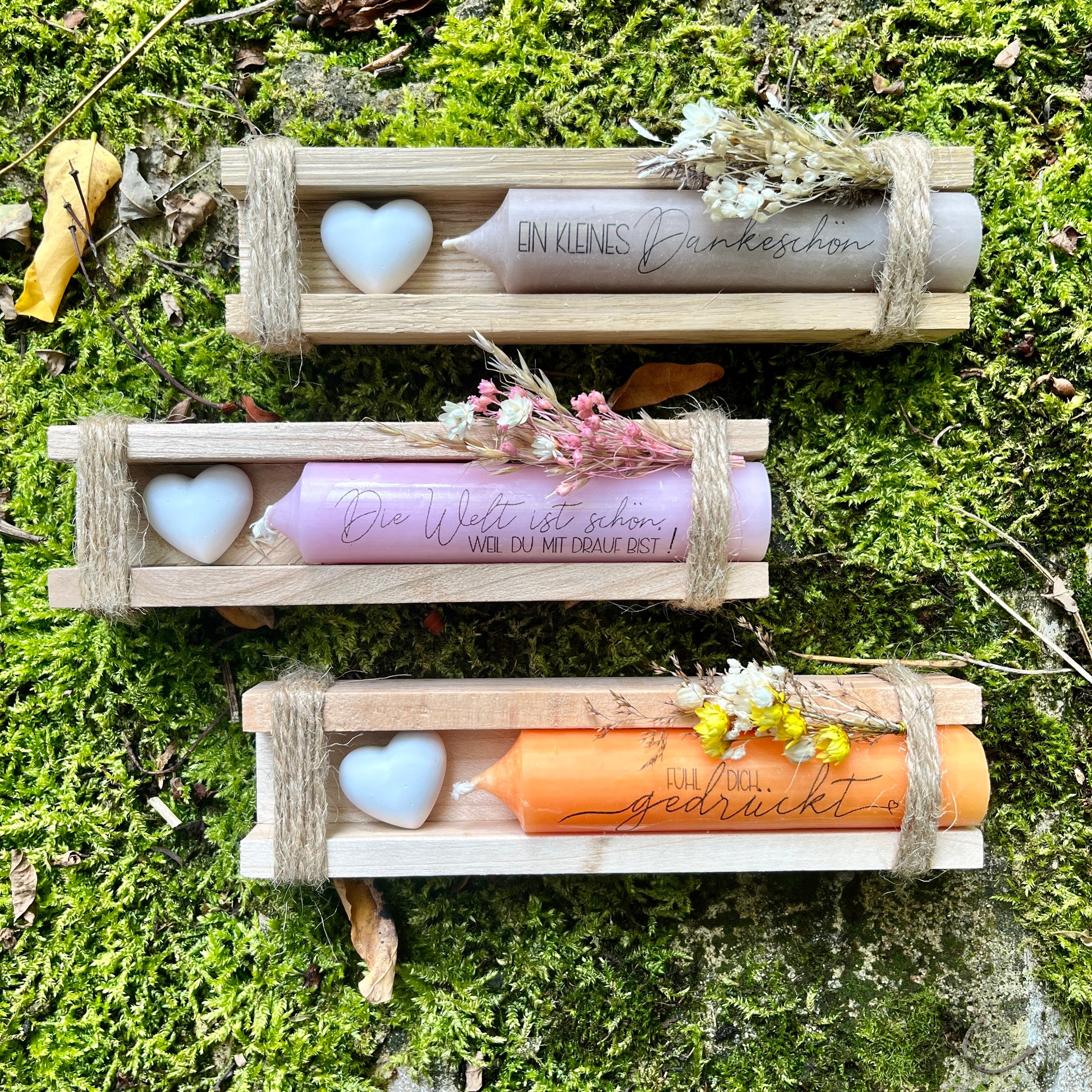 Du möchtest einem besonderen Menschen eine Freude machen? Unser personalisierbares Mitbringsel mit Stabkerze ist die perfekte Wahl für besondere Anlässe und herzliche Botschaften. Ob als Dankeschön, kleine Aufmerksamkeit oder Gastgeschenk – dieses liebevolle Präsent sorgt garantiert für strahlende Augen.