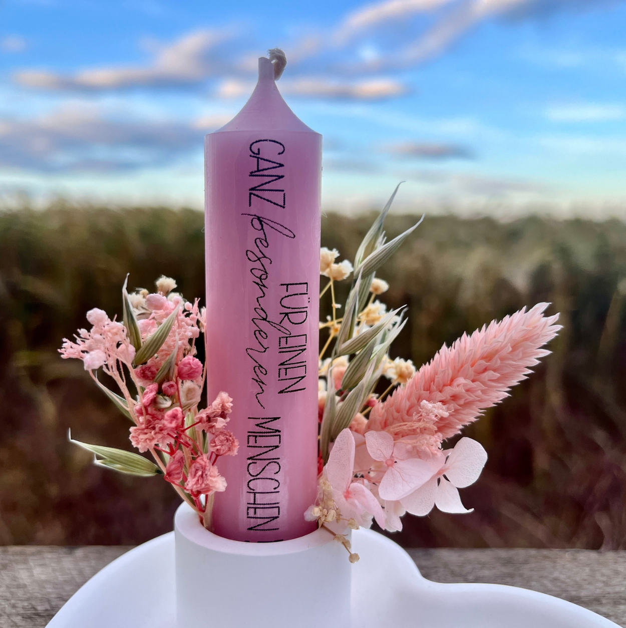 💖 Individuell abgestimmt: Die Blumenfarbe wird passend zur gewählten Kerzenfarbe angepasst, wenn nicht anders angegeben (siehe Foto).