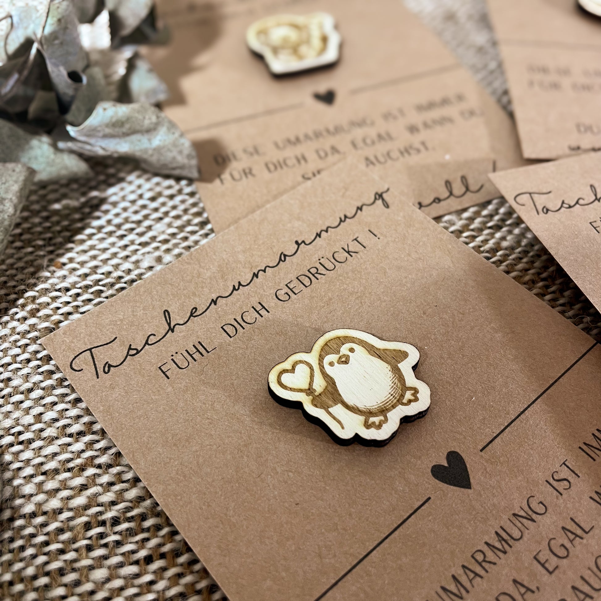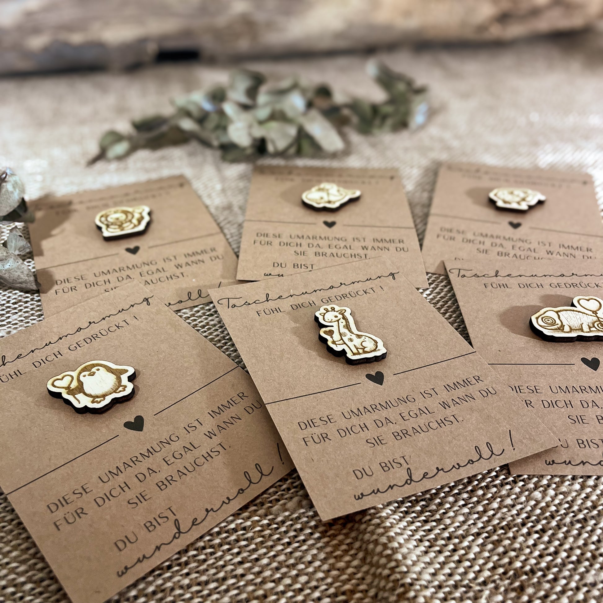 Bist du auf der Suche nach einem liebevollen Geschenk oder einem kleinen Trostspender? Unsere Pocket Hugs– Taschen-Umarmungen sind die ideale Wahl! Diese zauberhaften Holzfiguren passen perfekt in jede Tasche und dienen als persönliche Erinnerung oder als besonderes Geschenk für Freunde und Kinder, die ihre Liebsten, wie Eltern, in der Schule oder anderswo vermissen.
