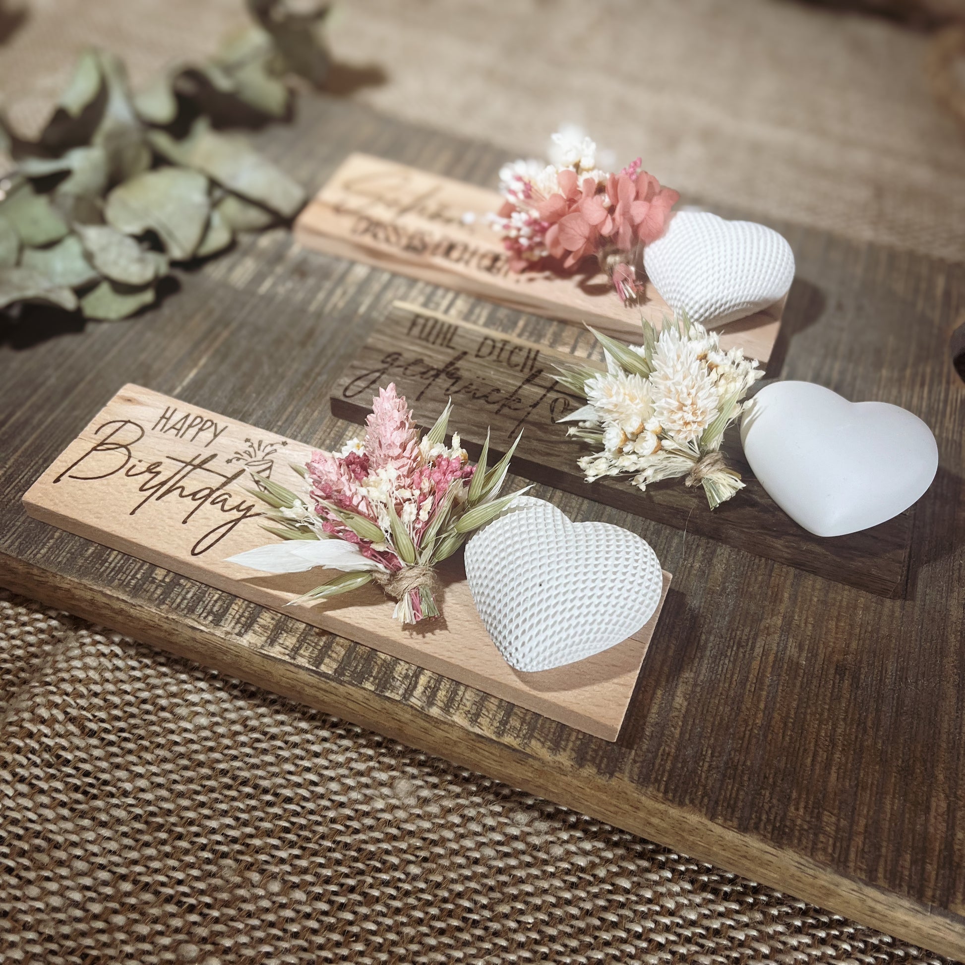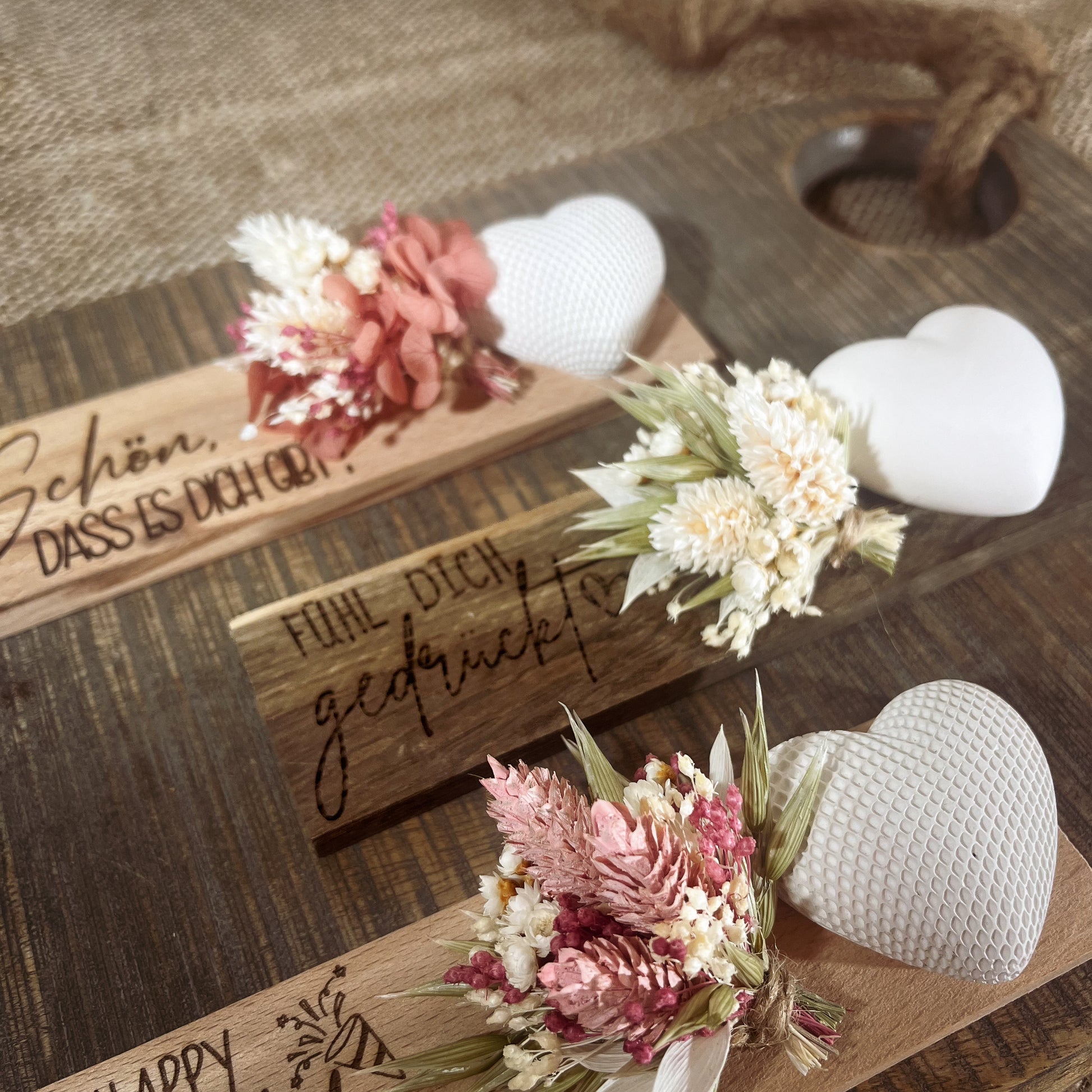 💖 Das Herz ist stilvoll auf einer Holzplatte dekoriert und setzt mit dem passenden Spruch einen emotionalen Akzent.