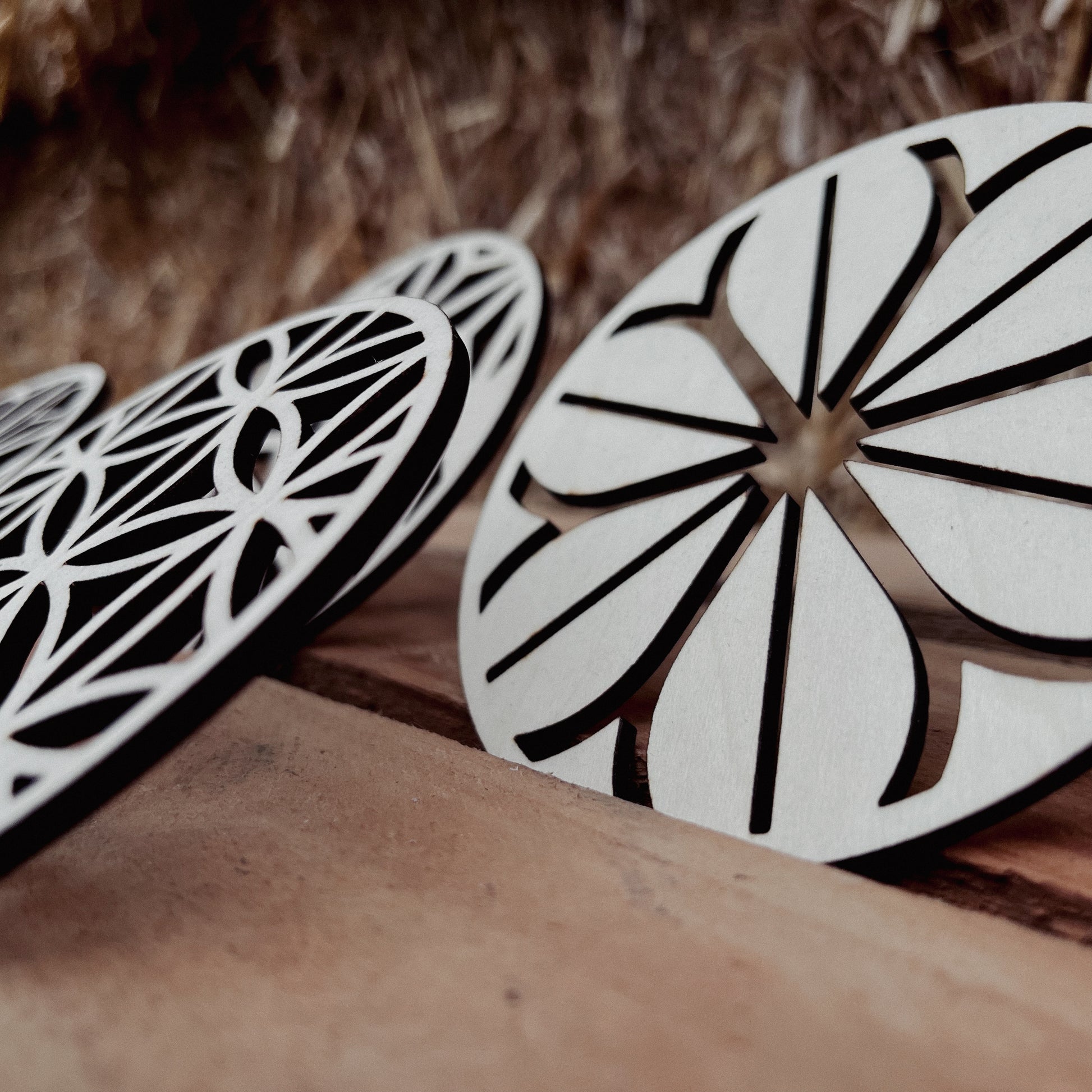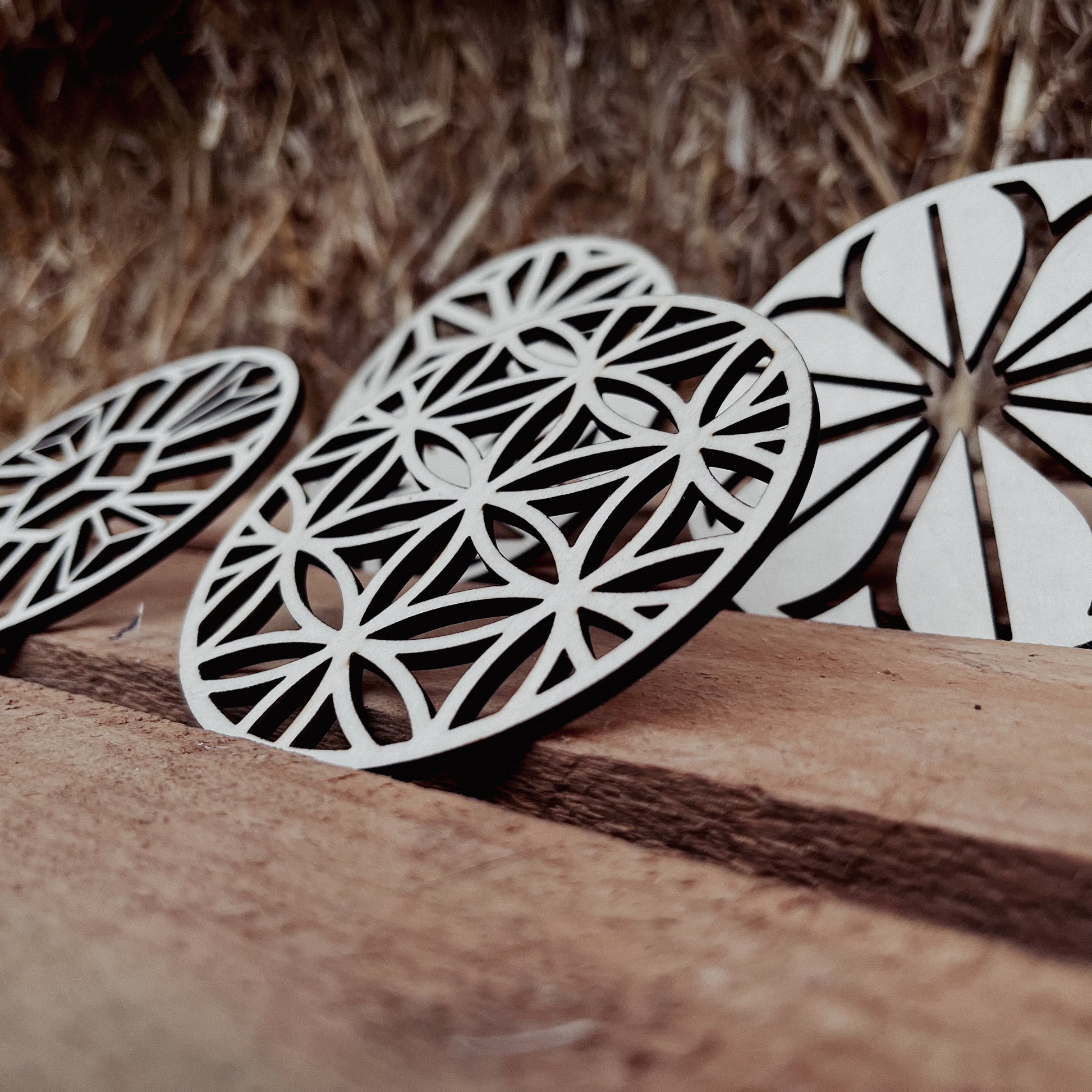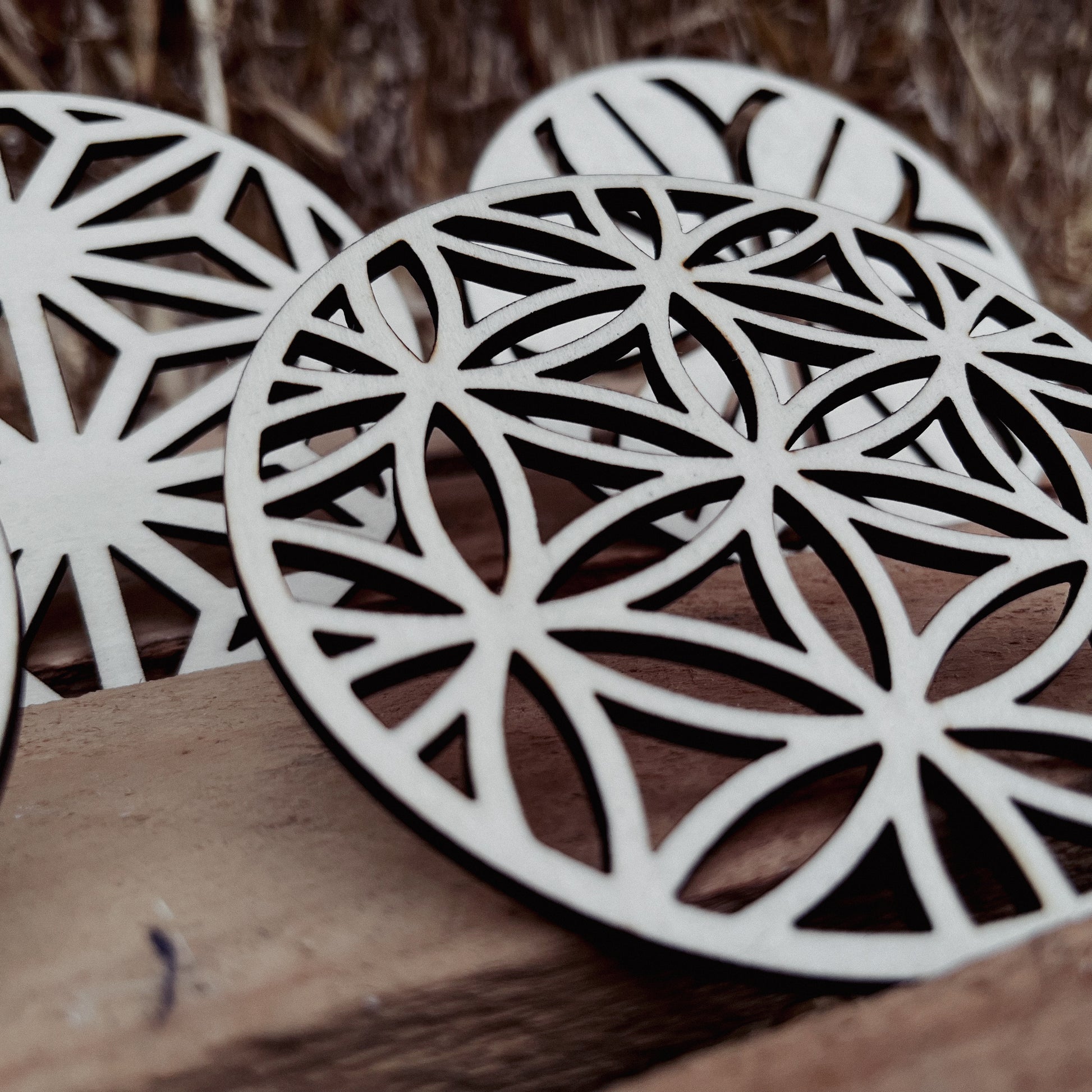 - Hochwertig gelaserte Holzuntersetzer