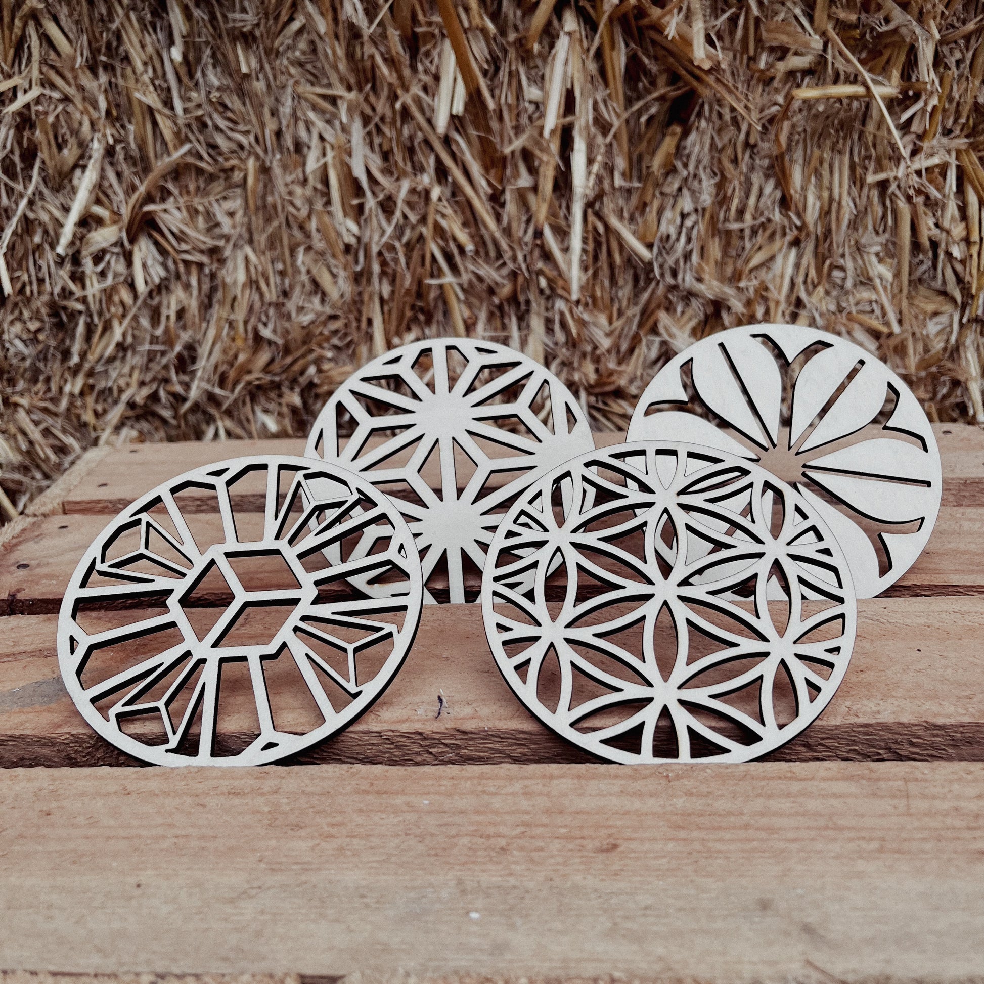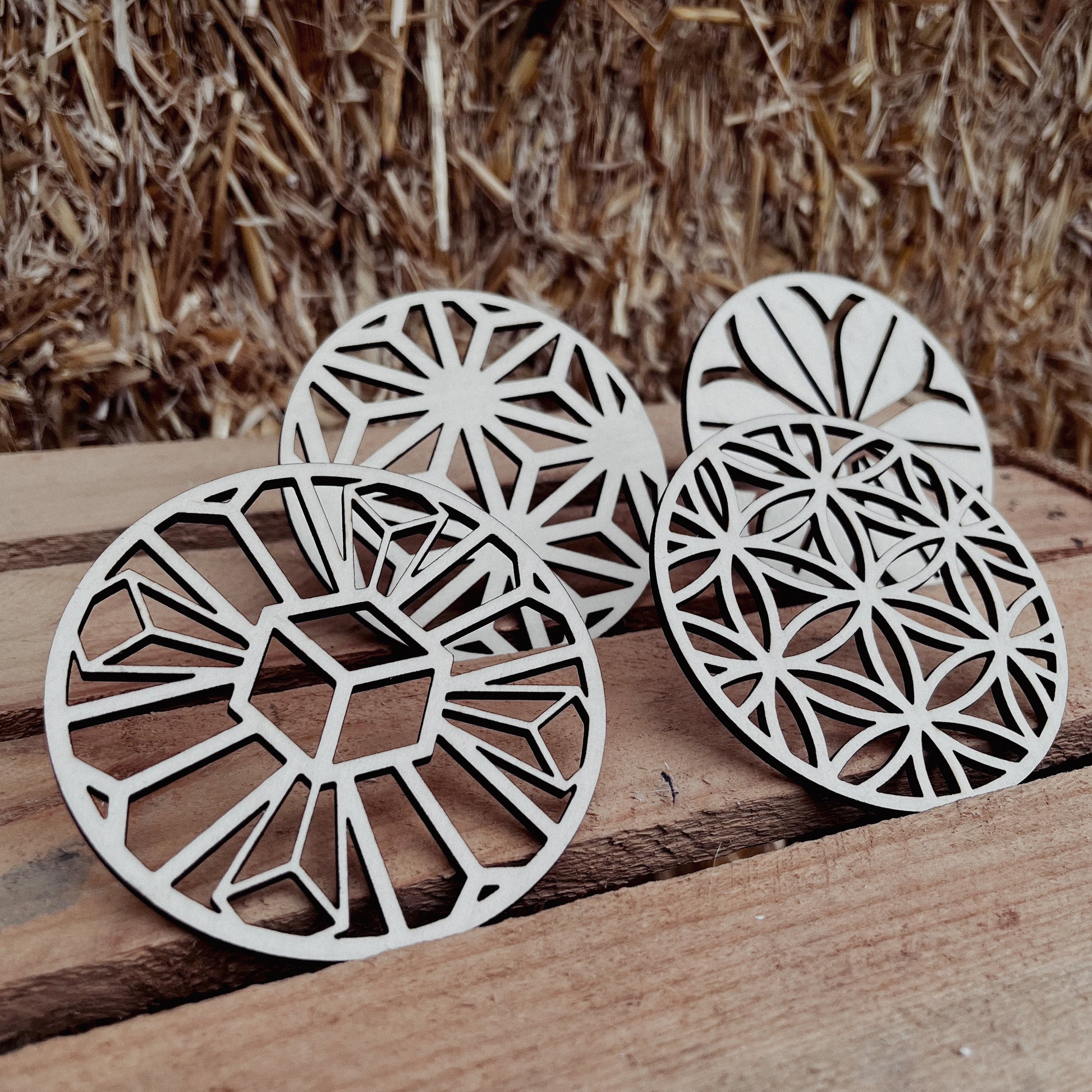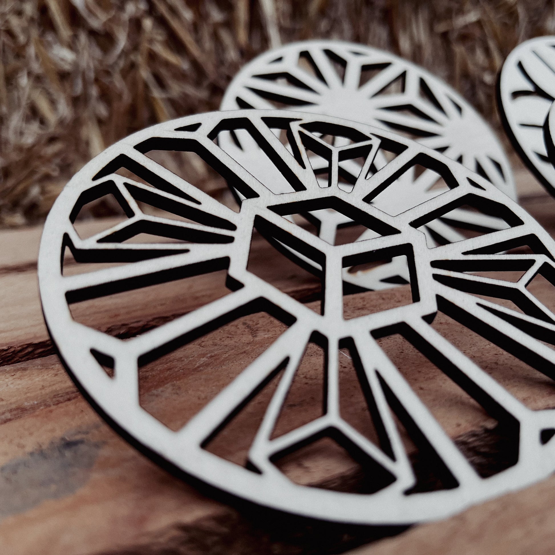Unsere stilvollen, aus Holz gelaserten Untersetzer vereinen modernes Design und natürliche Eleganz. Perfekt, um Gläser, Tassen und Becher stilvoll abzustellen und dabei Ihre Oberflächen vor Kratzern und Flecken zu schützen. Jedes Stück wird präzise gelasert, wodurch die feinen Details und klaren Kanten des Designs besonders gut zur Geltung kommen.